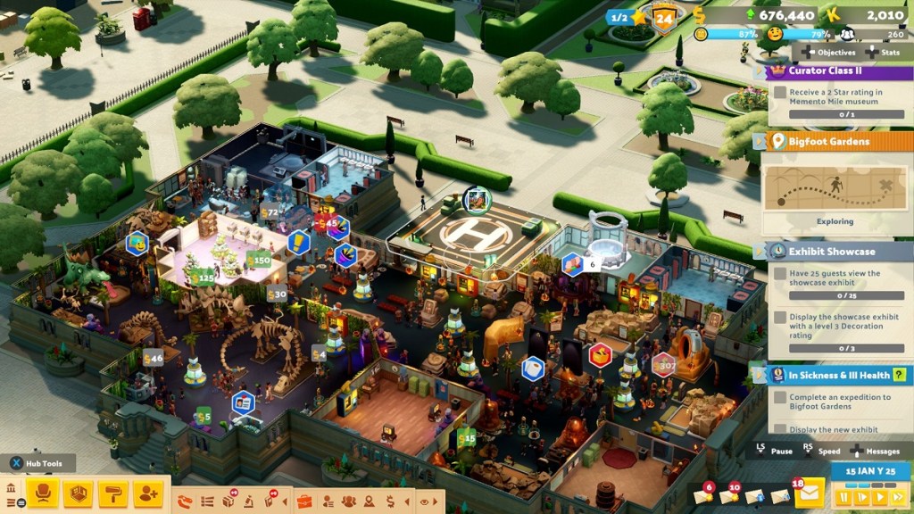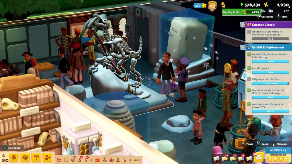 Interestingly, as the exhibits are your main commodity rather than the guests themselves, you spend more time on the layout and how the business runs than in prior titles. You would think that this would substantially change the experience, but it has very little impact. In fact, it made me reflect on the real-life museum business structure as a whole, as it heavily relies on donations from the public to keep operating. Museums often allow us to peek into other historical periods and learn from their accomplishments and mistakes, which we should want to preserve. Two Point Studios has cleverly brought up these thought-provoking questions about another business industry and has reminded me that I should visit a few museums in the near future.