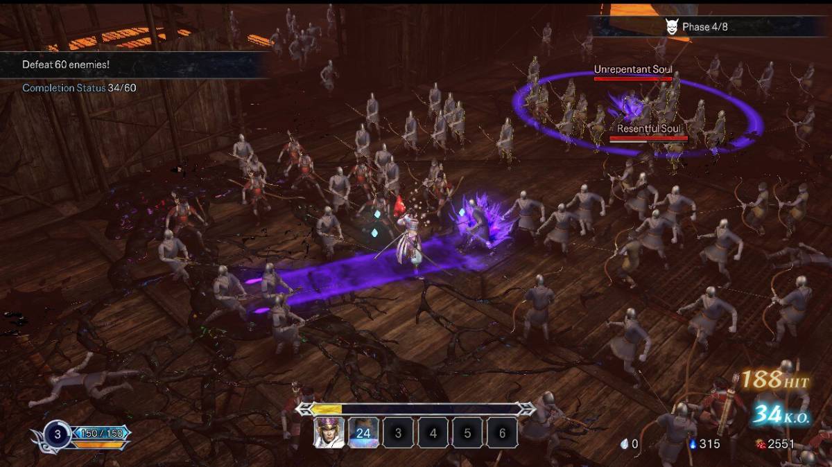The rest of Warriors: Abyss fares better. The ultimate roster of playable characters is massive, with a whopping 100 characters drawn from Dynasty Warriors, Samurai Warriors, and Warriors Orochi available. Only a small handful are initially available, with the rest unlockable as you play. Generally speaking, they play similarly to their counterparts from the mainline games. There are familiar combos and Musou moves to use, and each has their own attributes and stats to consider. You’ll want to be cautious about picking anyone too slow or flashy, as you’re going to have to be on the move constantly.