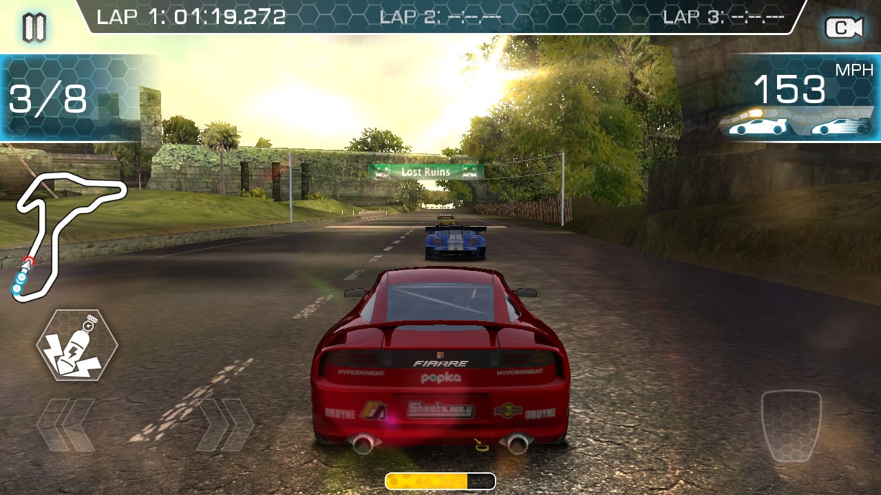 I’ve long maintained that the racer is one of the few genres that doesn’t suffer when you put it on smartphones. Racers are intrinsically simple games, and some of the the best ones are extremely easy to pick up and play. They focus purely on the racing experience, which makes them a good fit for devices with no buttons, since you actually can emulate a racing control scheme using a touch screen. It’s simple in theory, and it doesn’t take more than a couple of minutes with a smartphone racer to see how they could work. Acceleration can be automatic, while simple Left/Right and Brake overlays on the touch screen should be more than sufficient to do what you want your car to do. The rest is left up to how your car feels, how the track is designed, and what the AI is like. In spite of this, so many smartphone racing games can’t figure out how to crack the code. I’ve tried out more than I care to admit, and so many of them fail to grasp the concept of keeping it simple. They either try to emulate an on-screen steering wheel or force in tilt controls or make you swipe the screen for Nitrous boosts. None of these ideas work particularly well on phones, and in most cases they feel ill-designed. The only two racers I’ve found that do get the idea of sticking to a pure racing experience with simple controls are Asphalt 8 and Ridge Racer: Slipstream.