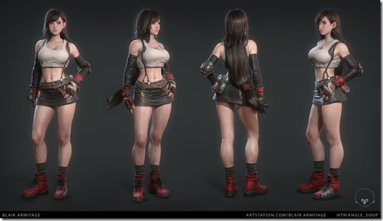DdH0-u7U0AAKWjL It’s always cool to see artists draw characters from other companies, and the latest that’s been making the rounds comes from Blair Armitage who is a character artist over at League of Legends developer Riot Games.   In anticipation of Final Fantasy VII Remake, she shared her own take on the game’s heroine Tifa Lockhart with a few highly-detailed pieces of fan art. Here’s a look:   DdH0-t3VwAAhN74 DdH0-nDVQAAHIpa DdH0-u7V0AA2GQv The software used for the artwork are 3DSMax, Substance Painter, Marmoset Toolbag 3.   Here’s a closer look with a trailer posted on Blair Armitage’s YouTube channel:   You can check out more artwork by Blair over at Twitter and her personal website.