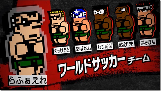 River City Melee Mach!! got its fifth team introduction trailer. It features World Soccer Team, starring the captain Raphaelle and his squad mates Eckert, Aviles, Warioba, Nugema, and Pumipon.