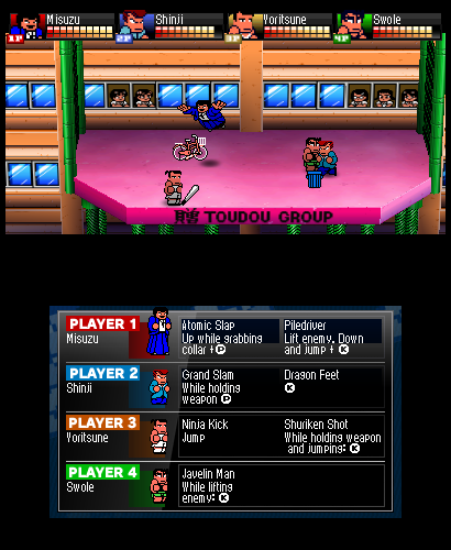 Publisher Natsume announced today that the upcoming 3DS beat ‘em up River City: Tokyo Rumble is releasing in North America and Europe in September. A release date has yet to be announced for the two regions, but Natsume provided some additional new screenshots in English for the game via their Facebook page: