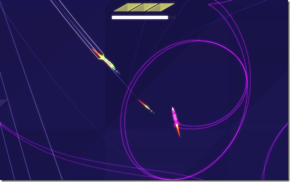 It’s a game in which you play a rocket, and shoot rockets at other rockets. It’s all about rockets. Neon rockets, that swirl and dance in a 2D space, endlessly trying to blow each other up.