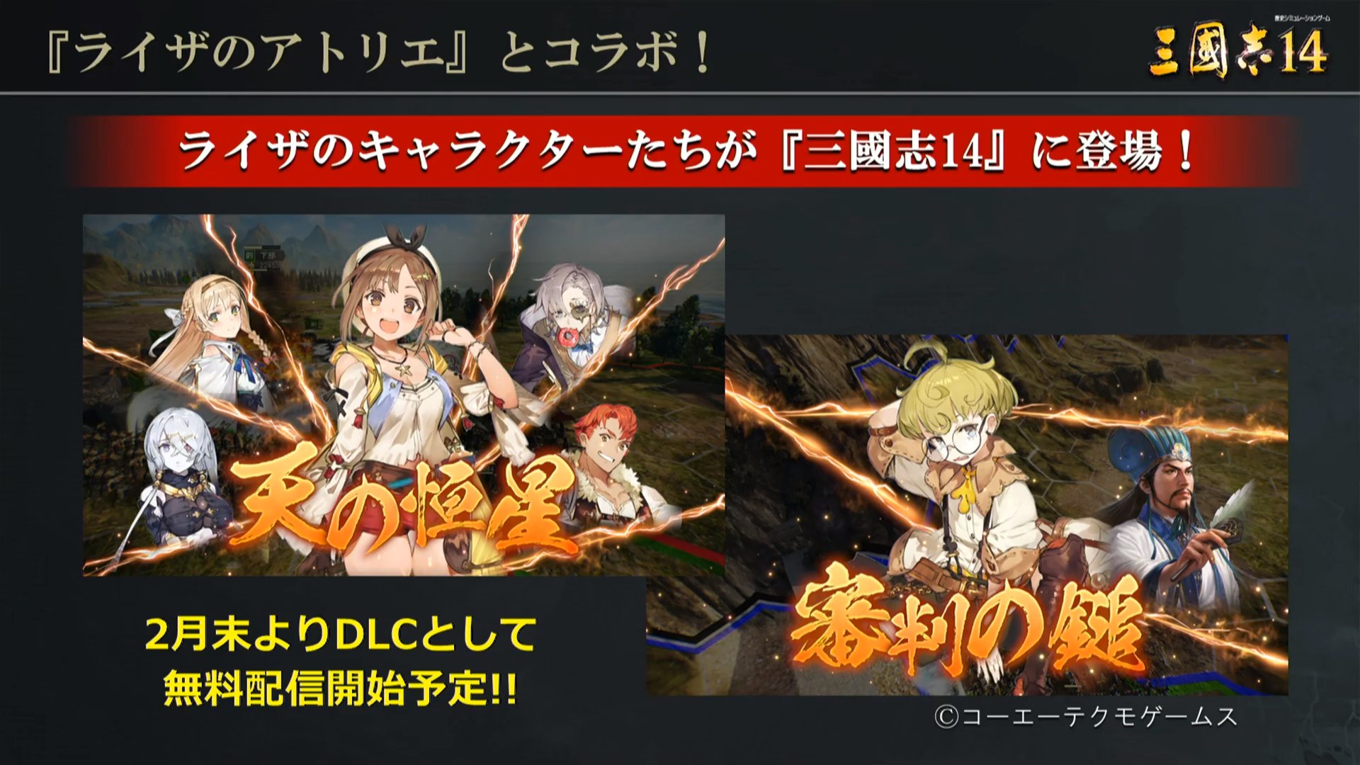 Characters from Atelier Ryza: Ever Darkness & the Secret Hideout appear in Romance of the Three Kingdoms XIV in late February as free DLC.