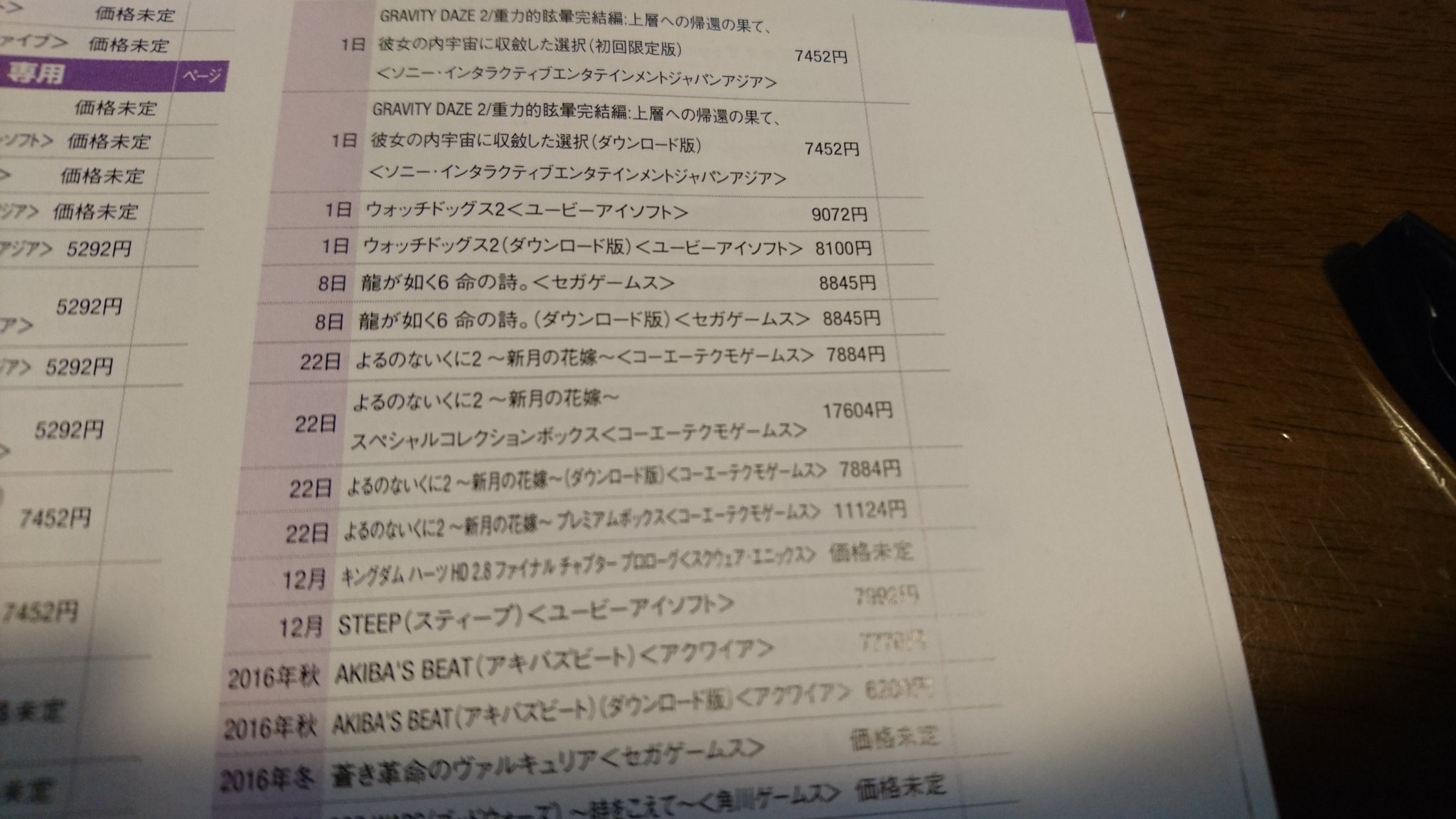 A recent image has surfaced in what appears to be some kind of schedule from a Japanese video game magazine showing a sequel to Nights of Azure, with a “Nights of Azure 2” for PS4 in Japan on December 22, 2016. [Thanks, Game Jouhou.]