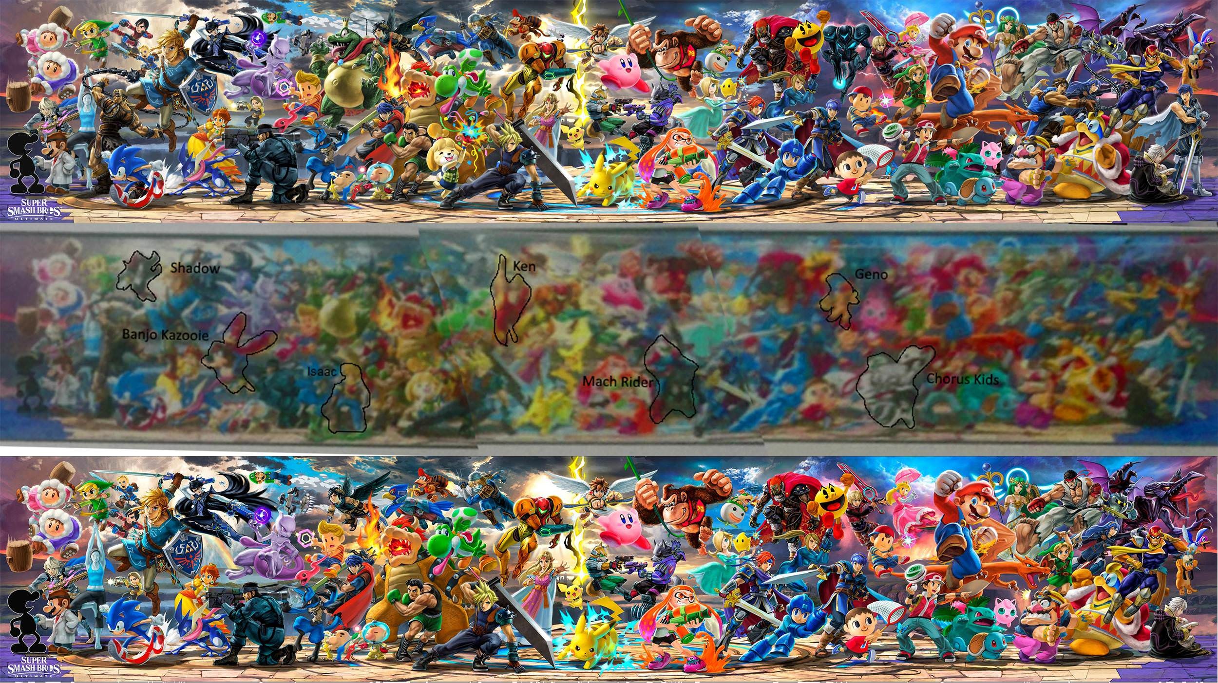A set of new images have been making the rounds, showing what appears to be promotional artwork for Super Smash Bros. Ultimate that shows previously unrevealed characters. [Thanks, Resetera.] Below is the first image in question that originally came from 4chan: