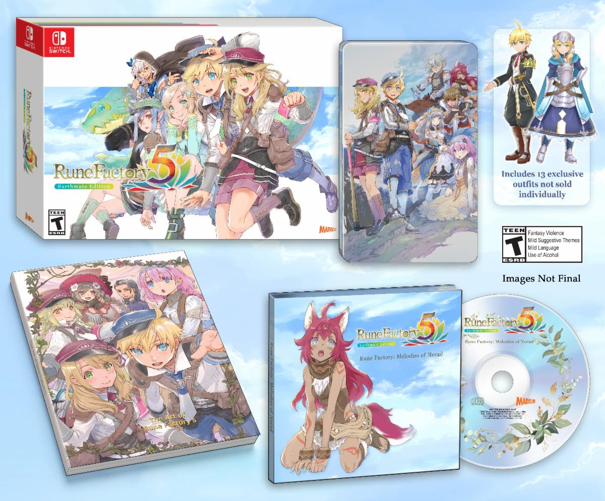 When Rune Factory 5 launches in North America, there will be a limited edition available–the Earthmate Edition. This version will be $79.99, compared to the normal $59.99 price point. It will also include the $69.99 Rune Factory 5 Digital Deluxe Edition’s DLC. As expected, people will get a physical copy of Rune Factory 5 in the Earthmate Edition. There will also be a Steelbook case holding it. There will also be a Melodies of Norad physical soundtrack with 15 songs, and a 70 page paperback art book in the box. As for the DLC, people will get the 13 Rune Factory 4-inspired costumes. Here’s a closer look at the Earthmate Edition.
