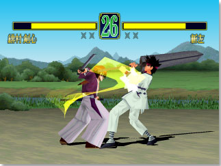 And finally, in 2006, Kenshin and his friends made it to the PlayStation 2, in Enjou! Kyoto Rinne, which was yet another fighting game that covered the Shishio Makoto arc of the manga. ![]()