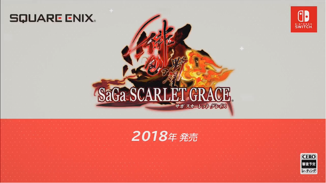 saga3 Update: Square Enix announced that SaGa Scarlet Grace is also headed to PlayStation 4, PC, and smartphones.   SaGa Scarlet Grace has been announced for Nintendo Switch on the Japanese Nintendo Direct today. The game written by SaGa series creator Akitoshi Kawazu first released back in 2016 in Japan for PlayStation Vita.   saga1 saga2   The battle features the series’ famous formation system, and also requires careful management of the Battle Timeline.   Here’s a trailer from the Japanese Nintendo Direct: SaGa Scarlet Grace is available for PlayStation Vita in Japan, and is coming to Nintendo Switch in 2018.