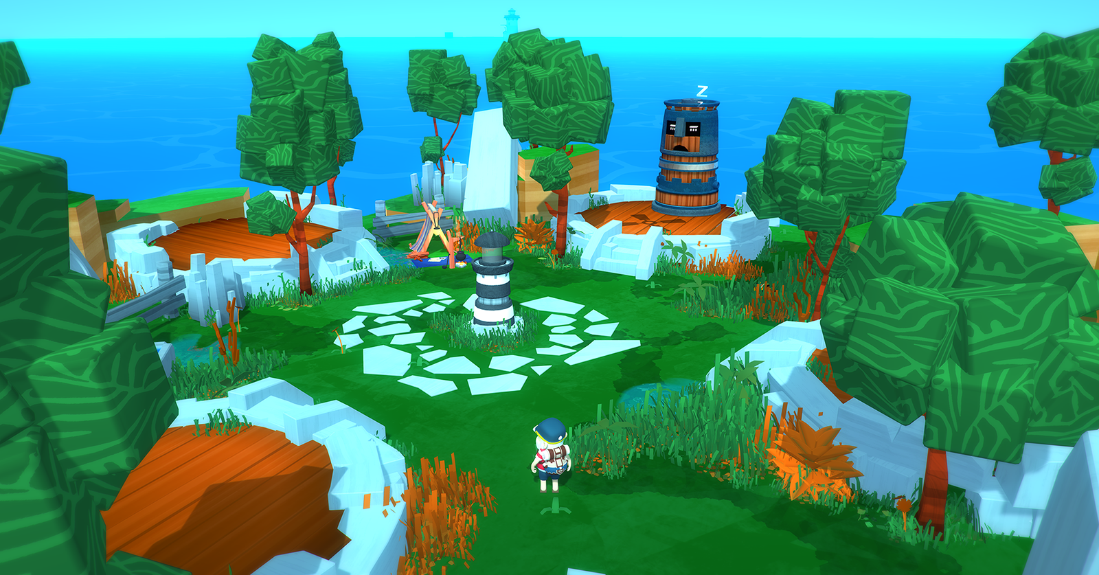 Players will also sail to various archipelagos, each containing puzzles the player can solve using various types of blocks. This have no set solution, so players are free to solve them in whatever way they can conceive using boxes that are magnetic, ones that spew fire or gusts of wind, as well as ones that can contain animals or have other effects.