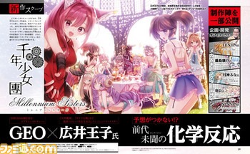 Last year it was revealed that Sakura Wars and Far East of Eden creator Oji Hiroi is working on a new project with Geo, and it was announced today as Millennium Sisters (tentative) for smartphone. In a teaser for this week’s issue of Famitsu magazine, we have some tidbits of information as well as a glimpse with tiny preview images.