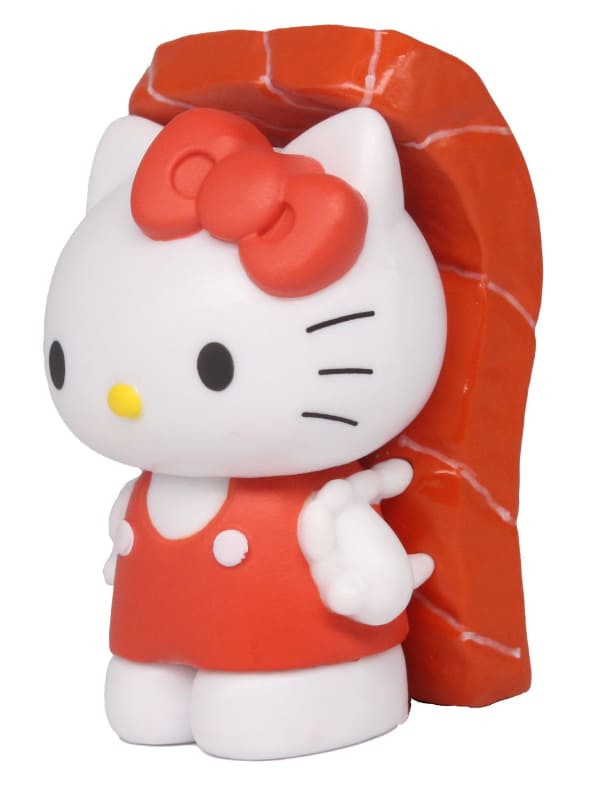 In total, there are five different variations you can get. You can either get Hello Kitty, Pochacco, Cinnamoroll, My Melody, or Keroppi. All of the Sanrio mascots except for Keroppi are in the nigiri style, with the neta (topping) on their back like a backpack. Keroppi is in a gunkan style. Hello Kitty has what looks like tuna on her back, My Melody has shrimp, Cinnamoroll has tamago, and Pochacco has salmon. Meanwhile, Keroppi just has seaweed around him. Part of the charm, according to Takara Tomy, is how surreal these toys look, between the sushi aesthetic and the blank expressions on the toys’ faces.