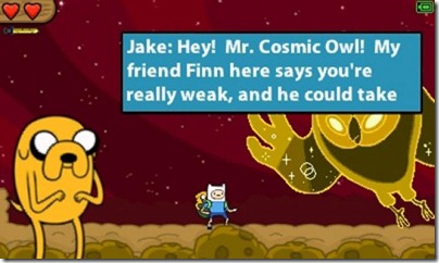 Though I’d actually advise avoiding the random battles. You gain nothing by fighting them. They just take up valuable time and often award some extra food products or a power up. Trust me. Adventure Time is simple enough where these power-ups will never be needed.