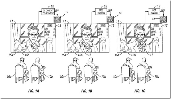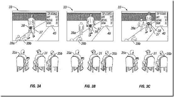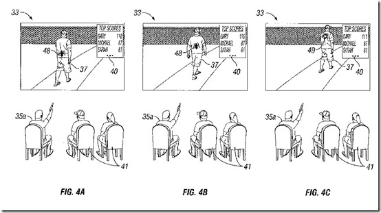This proposed program puts an overlay on top of a “media presentation” like a TV show or movie and allows players to interact with it while the presentation is playing. How? Here’s an example from the patent