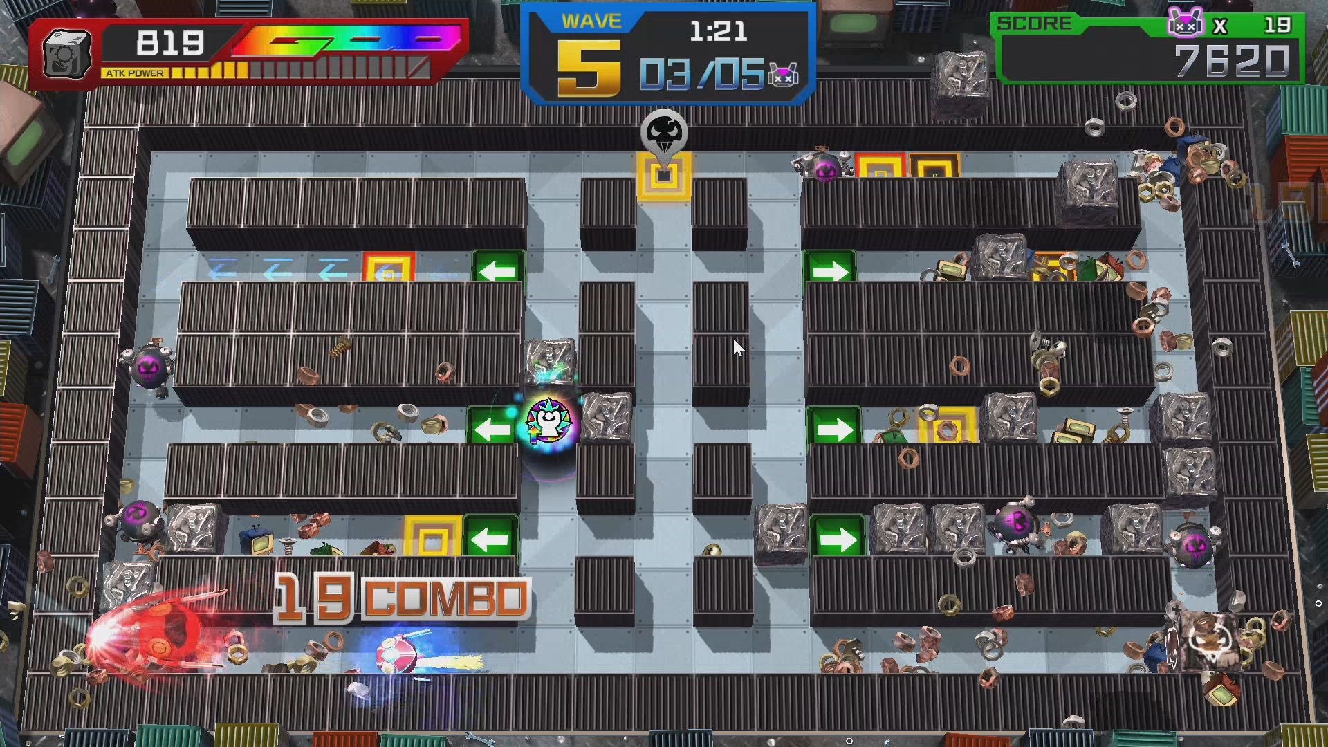 To get scrap on the field, you need to destroy scrap blocks on the field by pushing them towards other objects or players. To do so, you have the regular Push that moves the block 3 spaces, a Small Push that pushes the block one space, and a Charge Push that pushes the block all the way to the end. You can even create your own Scrap Blocks to push into enemies on the battlefield, although this uses your own scrap to do so.