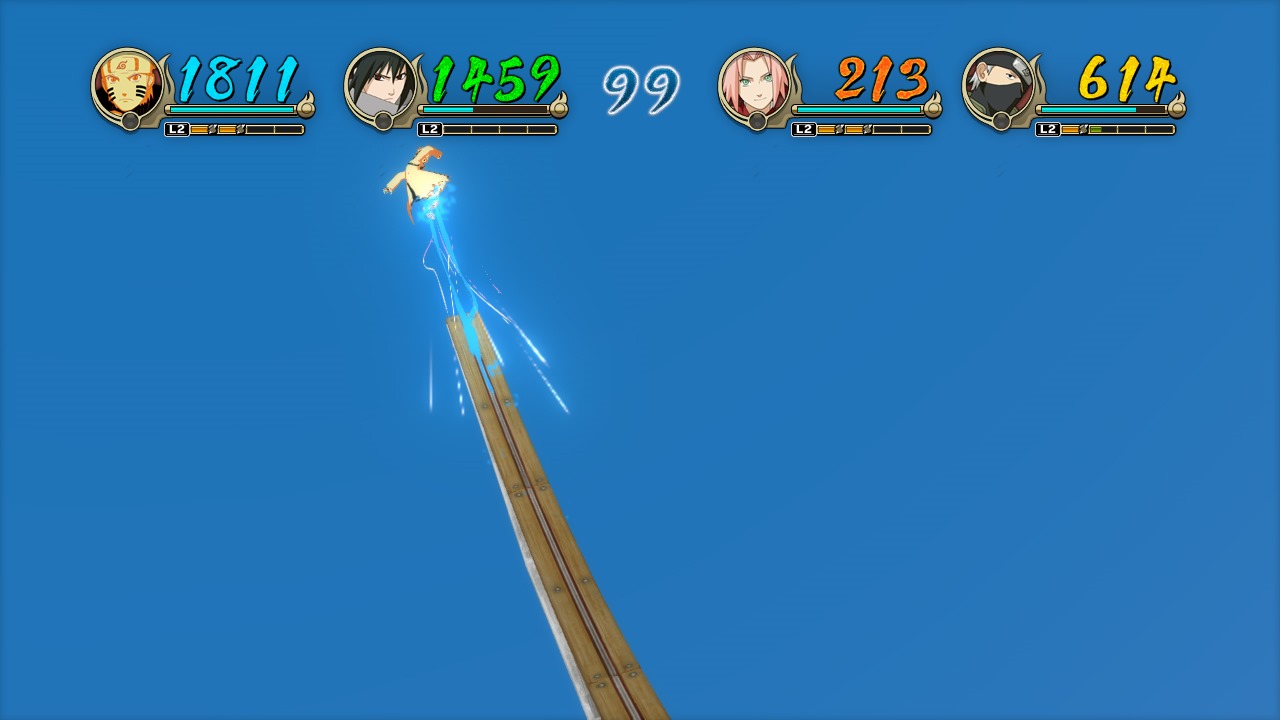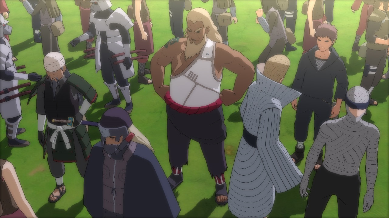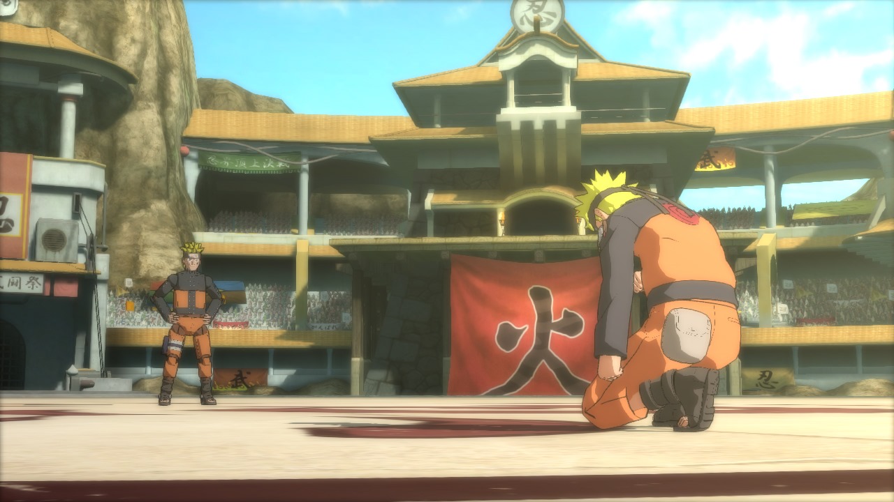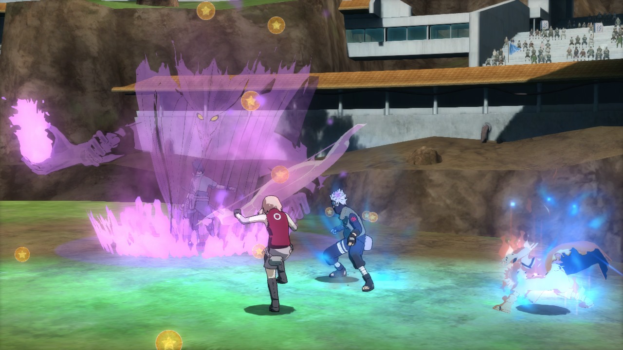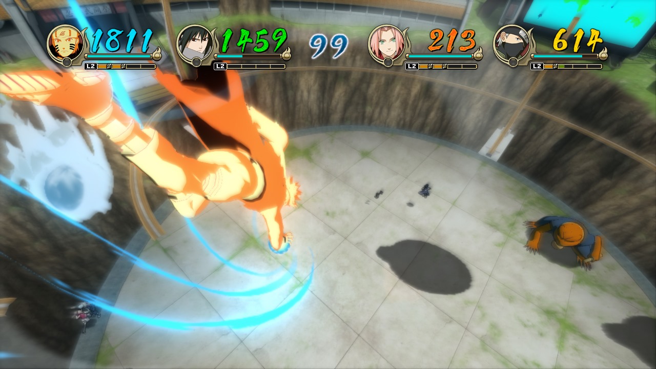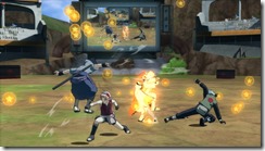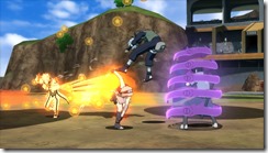 The Ninja World Tournament World mode in Naruto Shippuden: Ultimate Ninja Storm Revolution reminds me of those, but Namco Bandai’s game only lets one player fight against three CPU controlled opponents. Players beat up other characters to gain Battle Orbs and whoever has the most at the end of the match wins. This has an original story that involves Mecha-Naruto, a character made just for CyberConnect2’s fighting game.