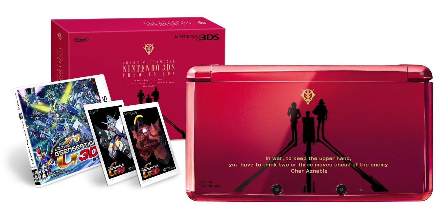 Monster Hunter 3G and New LovePlus aren’t the only games getting Nintendo 3DS bundles in Japan this year. SD Gundam G Generation 3D will come bundled with a special limited edition Nintendo 3DS as well, and this one looks rather nice: