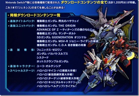 SD Gundam G Generation Genesis releases for Nintendo Switch in Japan on April 26, 2018. First-print bonus includes the Super Famicom title Super Gachapon World: SD Gundam X as a bonus digital title.