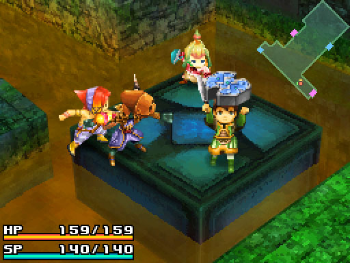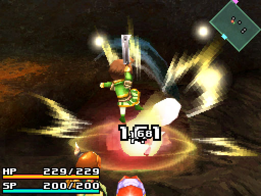 At first, skills and magic seemed cumbersome to use. Most of the dungeon exploring is done using the d-pad and face buttons to move and attack. If you want to use a skill, you have to press the R trigger, wait for the battle screen to appear on the touch screen (this only takes half a second) and then touch the enemy within range to use the skill on him. I was clumsy at that in the beginning, but soon it became second nature.