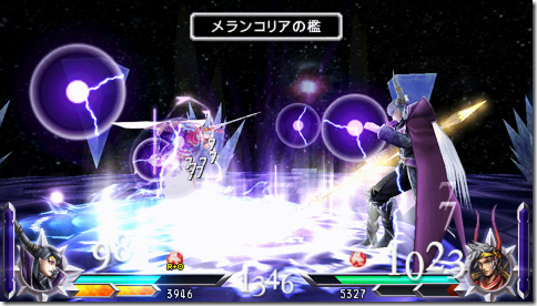 Square Enix released a few new screenshots of Dissidia 012[duodecim]: Final Fantasy. One of them contains Aerith, an assist character you get if you purchase Dissidia Duodecim Prologus. One of Aerith’s abilities freezes an enemy in their tracks. Protection of the Stars (or Planet Protector, the limit break name – thanks Tommy!) appears to be the spell that grants temporary invincibility.