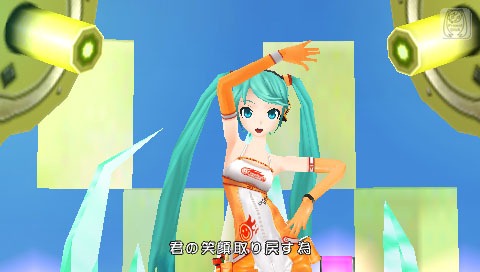 Hatsune Miku is celebrating Sonic’s birthday by wearing a Sonic jumpsuit in Hatsune Miku: Project Diva Ver. 2.5. It’s one of the new modules Sega added to the PSP title. You can also dress Hatsune Miku as Fei Yen, one of the playable virtuaroids in Virtual-On, and as Racing Miku 2011.