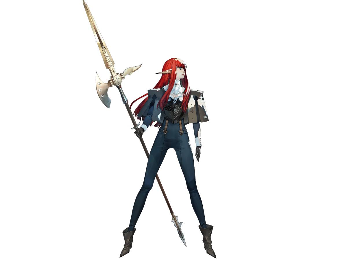 Hulkenberg is holding a polearm for the figure, and it is the same one that’s shown up in official art and images. She’s wearing her standard suit and armor from the game. This is a more casual pose for the character, even though she is holding a lance, as her left hand is on her hip and it looks like she is walking.