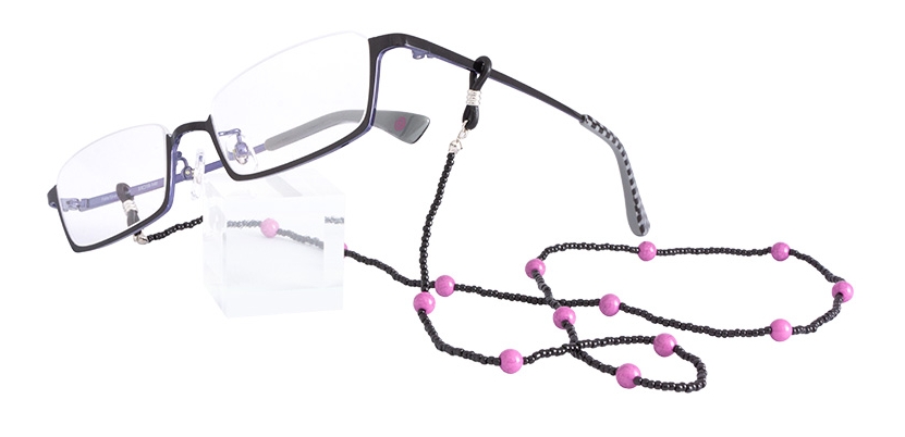 The Fate/Grand Order glasses frames inspired by Murasaki Shikibu, the 10th-century Japanese author of the Tale of Genji and Fate/Grand Order Caster, use an under-rim style patterned after Shikibu’s reading glasses. The tips of the arms have a checkered pattern based on the kimono jacket she wears, and purple accents allude to her color scheme. The frames also come with a beaded eyeglasses chain in the same style.