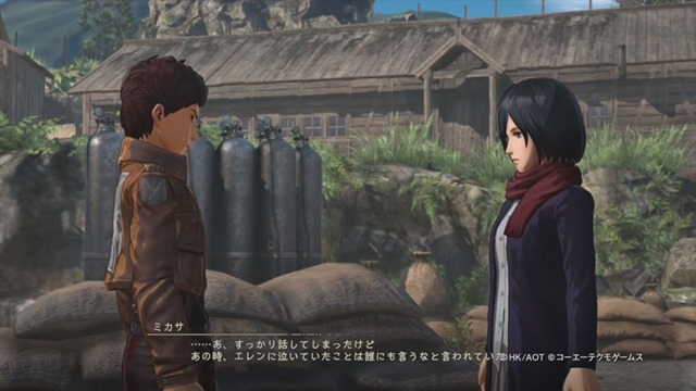 As an interesting aside, the scarf Mikasa is wearing is rather important. When Eren saved her when they were children, he gave it to her. So, it only seems natural that she wears it in Attack on Titan 2 when out of uniform.