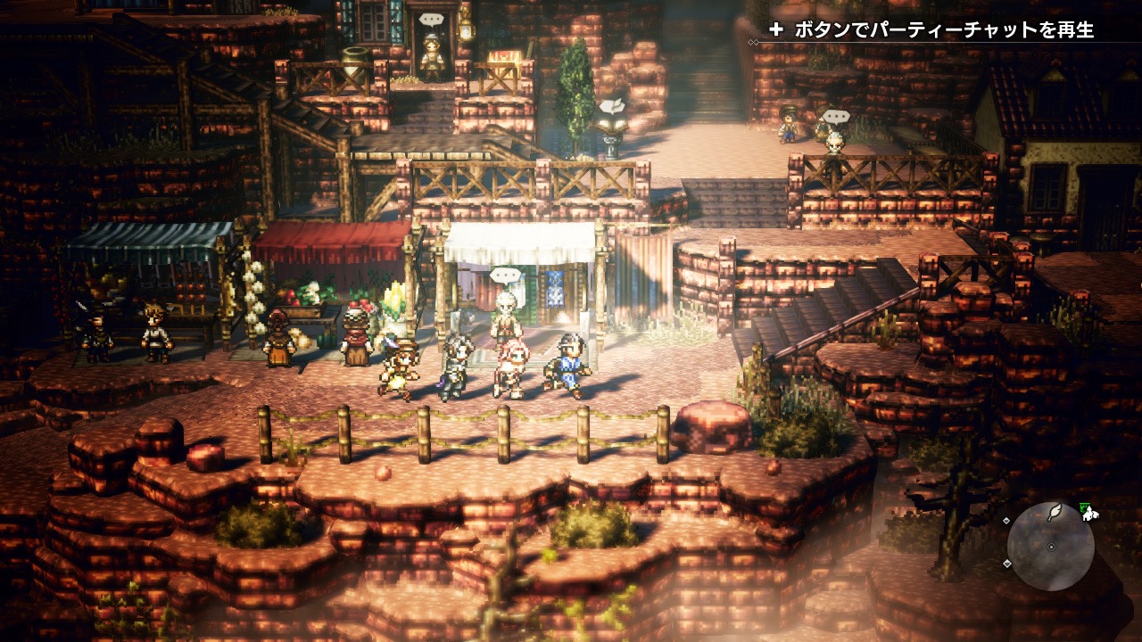 You can see party members interacting in various ways at the pub. Octopath Traveler will come to the Nintendo Switch on July 13, 2018.