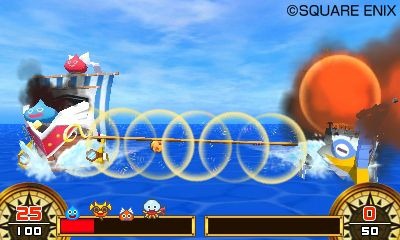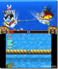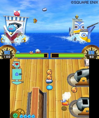 The sequel to Dragon Quest Heroes: Rocket Slime, Slime Mori Mori Dragon Quest 3: The Great Pirate Ship and Tails Troupe, replaces tanks with pirate ships, but uses the same gameplay system. Players help Rocket fire everything on board – bullets, rocks, and even slime sailors to take an opponent’s ship down.
