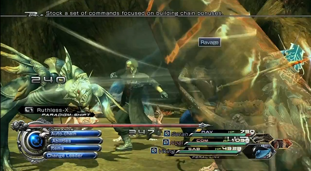 It’s unclear if Snow will be playable, but he joins Serah and Noel to fight in at least one battle. This trailer from New York Comic-Con shows Snow protecting the two lead characters of Final Fantasy XIII-2 from a giant gooey monster in a cinematic action. Snow stays in the fight and gives monsters a knuckle sandwich. What’s interesting is this battle has four characters – Snow, Serah, Noel, and their Viking monster buddy. This video also has the still unexplained "change leader" command, which was in the Tokyo Game Show video too. Does that mean players will be able to switch between Noel, Serah, and perhaps other characters?