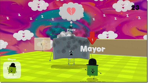 You do this by stacking and chaining groups of people and getting them to hold hands. Once you have a big enough group you can make the mayor explode using the bomb under his hat. Why would you do this? Funomena explains: “these explosions will be so stunning that *anyone* would want to get a closer look. By building crazy chains and stacks, and then blowing them up, you will fill the sky with joy. This is what unlocks new people, new levels and eventually new worlds to play in.” The challenge in Wattam is in finding hidden people or those who are asleep around the scraps of the world. For example, with flowers, you may have to pour water on them (or have a cloud rain on them) to have them grow from sprouts into beautiful flowers. There are also “boss” characters that will be hard to make a connection with.