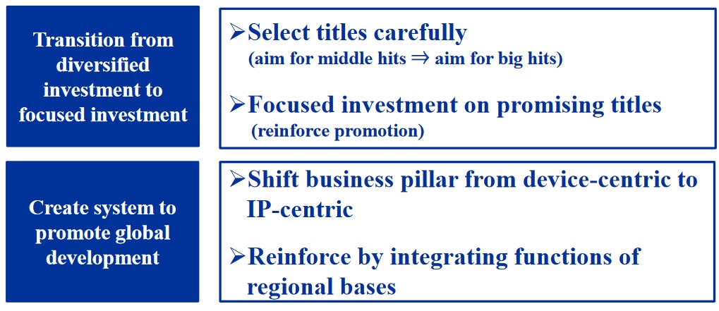 Fairly straightforward stuff from Sega, along with the mention of restructuring business structures, including organization, to achieve the strategies mentioned above. Now, in order to create these “global hits” Sega has broken up their plans into three parts, which you can check out below: