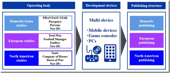 And more on future organization structure, which gives us an idea of what kind of titles are considered Sega’s big sellers across its studios around the globe, as well as development devices and publishing structure: