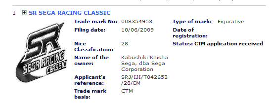 Sega filed a trademark for Sega Racing Classic with a logo in Europe. Unlike other trademarks this one is specifically for use with arcade machines and coin operated electronic arcade games. Perhaps, Sega Racing Classic will be the first driving game built on Ringedge hardware. So far only two games, Border Break and Shining Force Cross, make use of the new board.