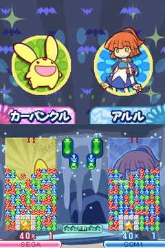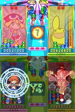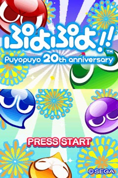 While PuyoPuyo! 15th Anniversary was released on the Nintendo DS, PlayStation 2, PSP and Wii, PuyoPuyo! 20th Anniversary looks like it will only be a Nintendo DS game. Sega are including online play via Nintendo Wi-Fi, and say that 20th Anniversary will have both new and old games, like PuyoPuyo Sun and Fever.