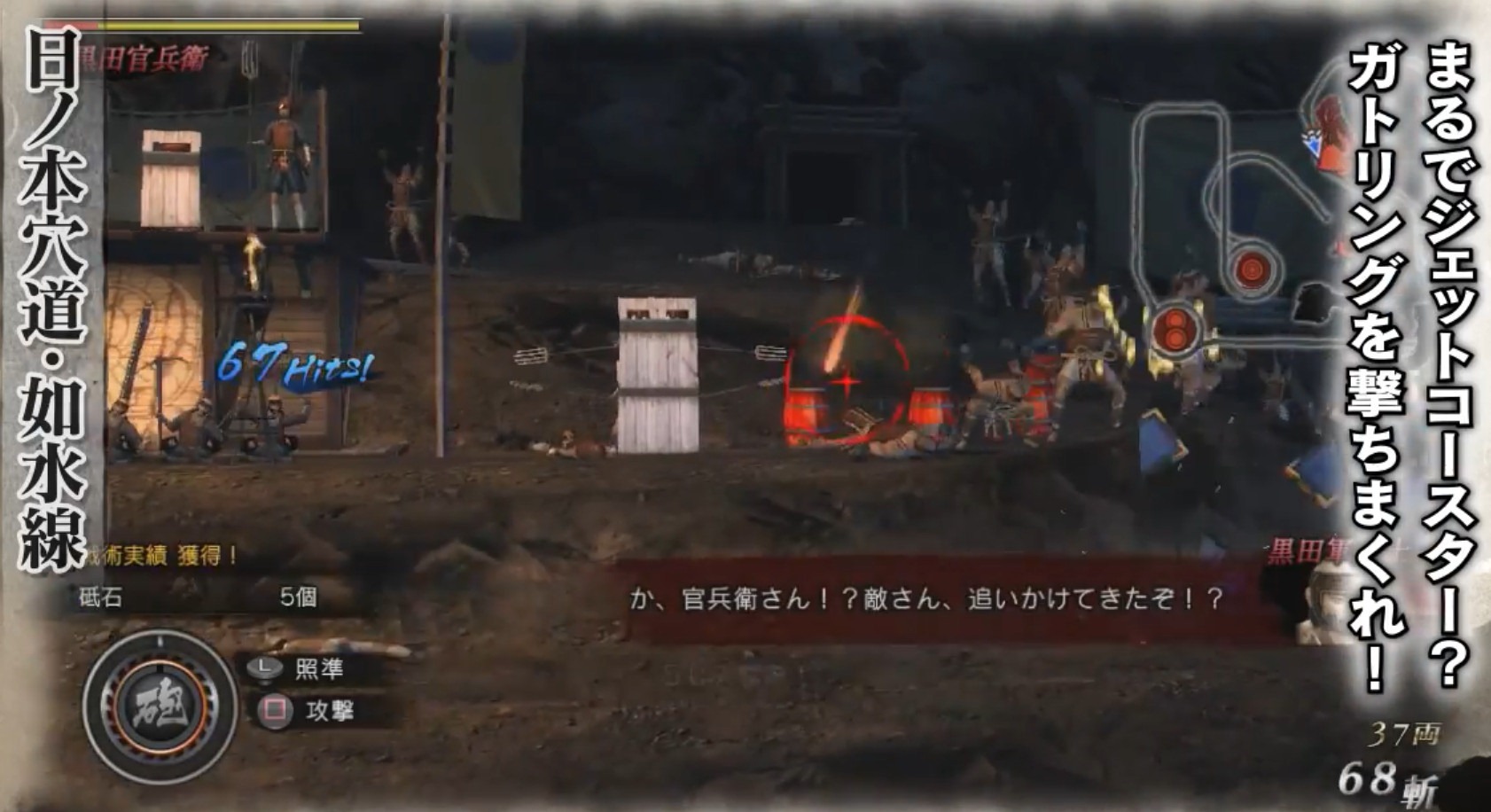 As if that weren’t enough, we also have modular castles that pop out of the ground—since lever technology was clearly more advanced in the past than it is now—and even mini-games such as gunning down foes while on a minecart. There’s even a first-person mode of what looks like Hondam Honda Tadakatsu’s Cannonfire mode!