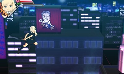 Above: Bursting Boobs Producer, Kenichiro Takaki, pretends to take a swig of the original energy drink at a promo event for Senran Kagura last year.