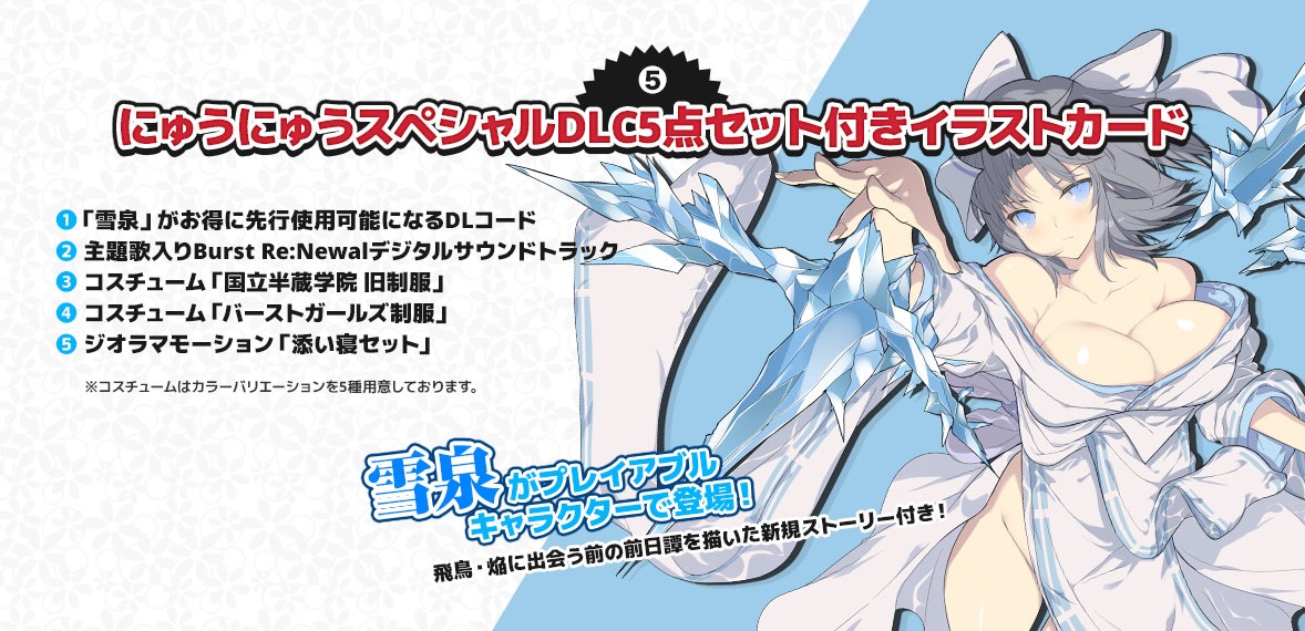 Senran Kagura Burst Re:Newal, the upcoming PS4 remake of Senran Kagura Burst is getting a limited edition “Nyuu Nyuu DX Pack” as previous entries from the series. Here’s a closer look at its contents.