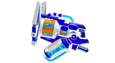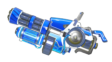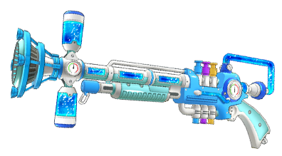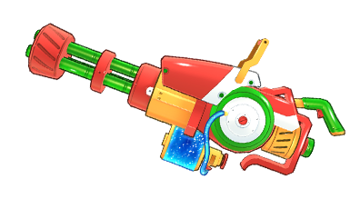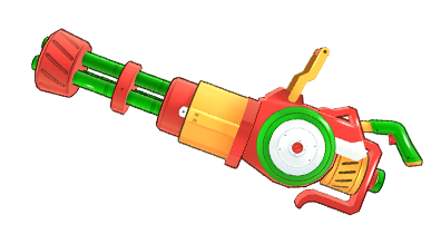 A Water Gun that launches explosive water balloons. The water balloons explode when they come into contact with enemies and surfaces. Gatling Gun