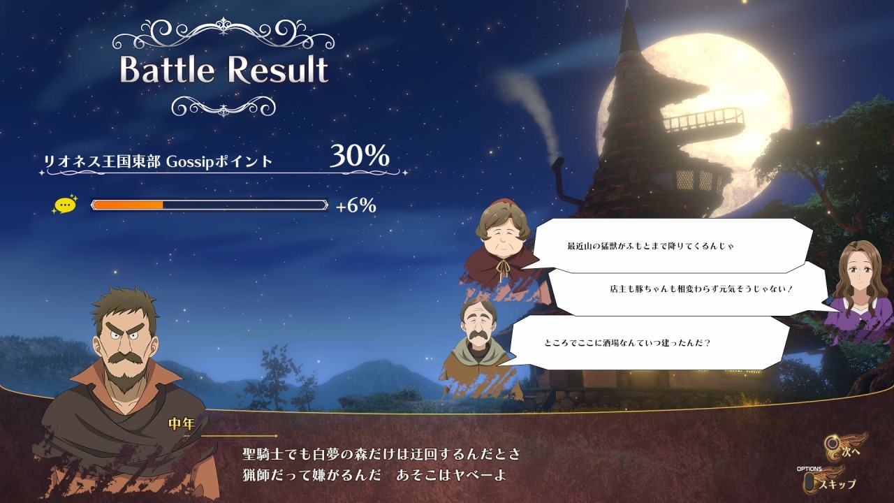 So basically the progress flow is fight battles, have rumors spread out, take on the next quest.
