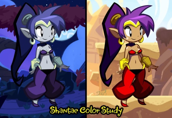 WayForward have taken note of the feedback, and are presently trying out new colour palettes for Shantae’s main sprite. Above is a look at their current progress. You can compare this new sprite’s skin tone with the previous one here. WayForward have also provided an explanation regarding how colours work in their game, and other details regarding Shantae’s more stylized and exaggerated design: