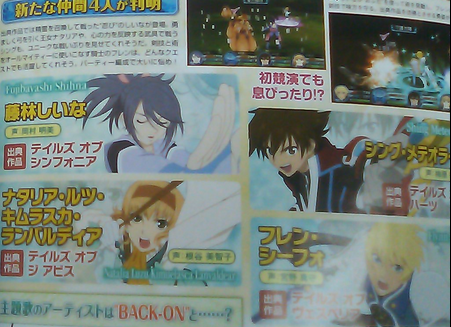 As Jump mentioned a few days earlier, Shing from Tales of Hearts, Natalia from Tales of Abyss, and Flynn from Tales of Vesperia are in the game too.