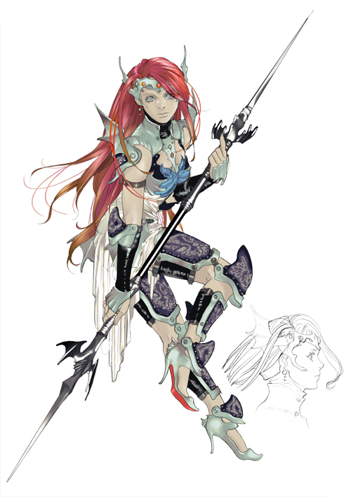 The lady in the picture is Barbara and she is the focal point of one of the game’s light scenarios. Her chapter, "The Last Dragoon", tells what happened to Barbara years after the dragoon village was annihilated by airships. Barbara grew up in the wild raised by wyverns.