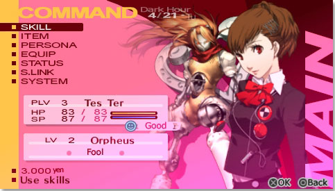 - You can control individual characters in battle, just like in Persona 4. I found myself needing to take control of Yukari a few times because she either tended to heal a little too often or not often enough, depending on the orders assigned to her.