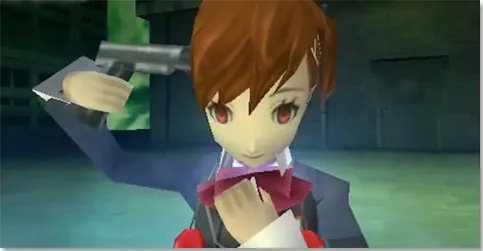 Then again, 3D models have their downsides, too. A few days into the game and you arrive at the scene where the SEES dorm is attacked by a Shadow. As per the original script, you run up to the roof with Yukari, who tries to summon her persona, but can’t muster up the courage to do so. Your character then decides to take matters into his / her hands, and puts the Evoker to his head.