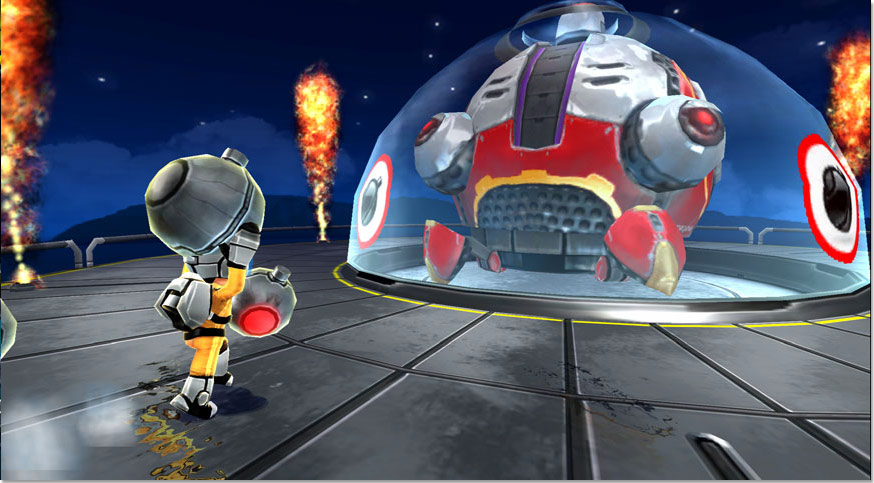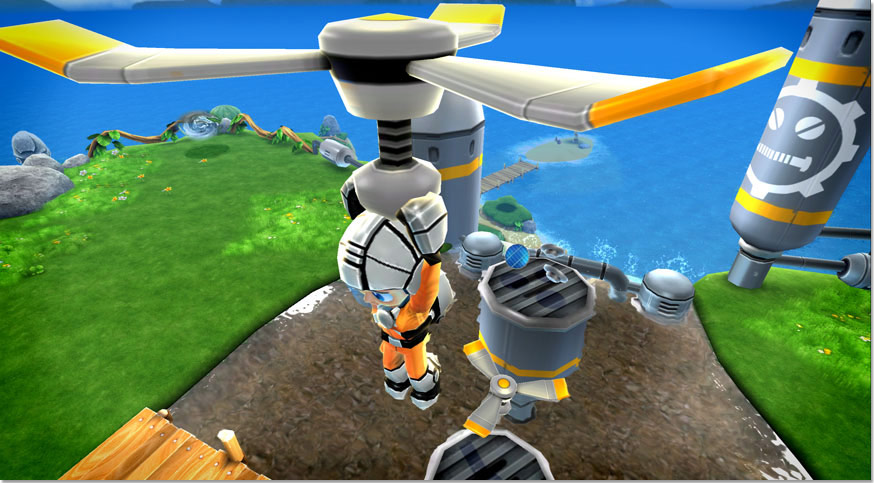 Following Fun! Fun! Minigolf and Art of Balance, Shin’en intend to publish three new WiiWare games this year. The first of these is Jett Rocket, a platformer with a rather retro-meets-modern vibe. Retro in the sense that the protagonist, Jett Rocket, looks rather like Mega Man, and modern because the environments look stylistically similar to Super Mario Galaxy.