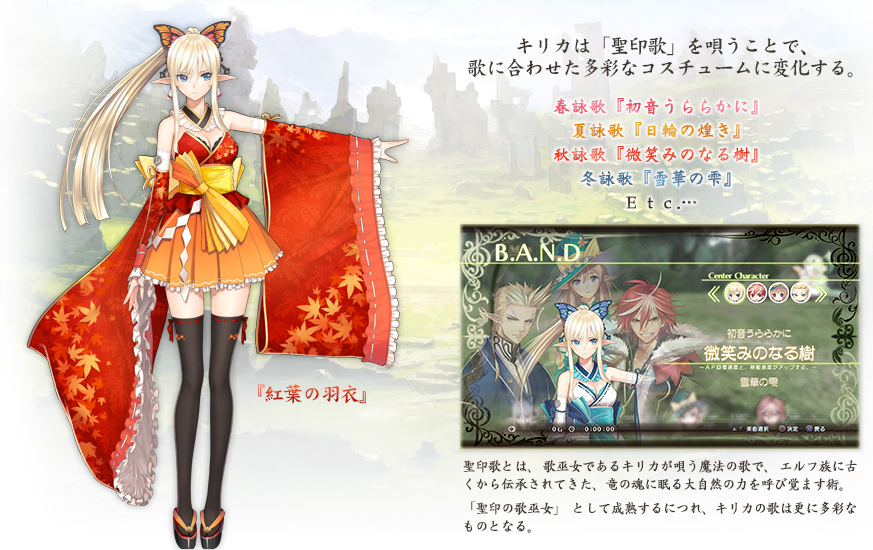 Shining Resonance has a protagonist that can transform into a dragon, along with interesting instrument weapon hybrids that the characters will use to take on foes. The official website shows off something a little different with the Dress-Up feature employed by a couple of the game’s heroines.