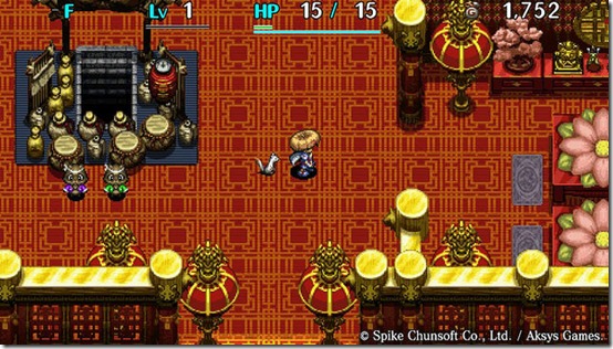 There are two forms of multiplayer in Shiren The Wanderer: The Tower of Fortune and the Dice of Fate: cooperative and versus. In the co-op mode, two people go into dungeons together and try to reach and beat the boss. You only succeed if both people make it completely through the dungeon. In the versus mode, two players are put in an enclosed space together and must use their attacks and inventory items in an attempt to be the last Shiren standing.