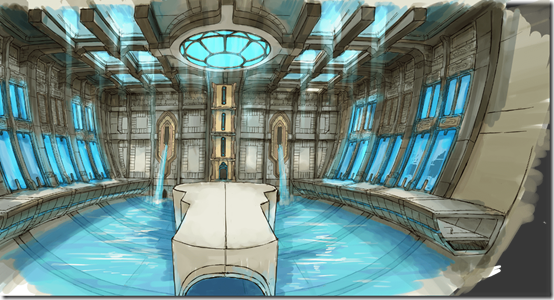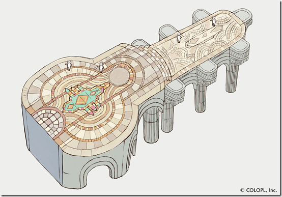 For this second wave of information, we’d like to show off what it’s like inside the whale-shaped floating island that was also seen in the trailer. This is a picture of what it looks like from a bird’s eye view. Apart from having man-made structures like what seems to be a park, we can also see that it has a pond. A first look at the internal structure of the floating island!